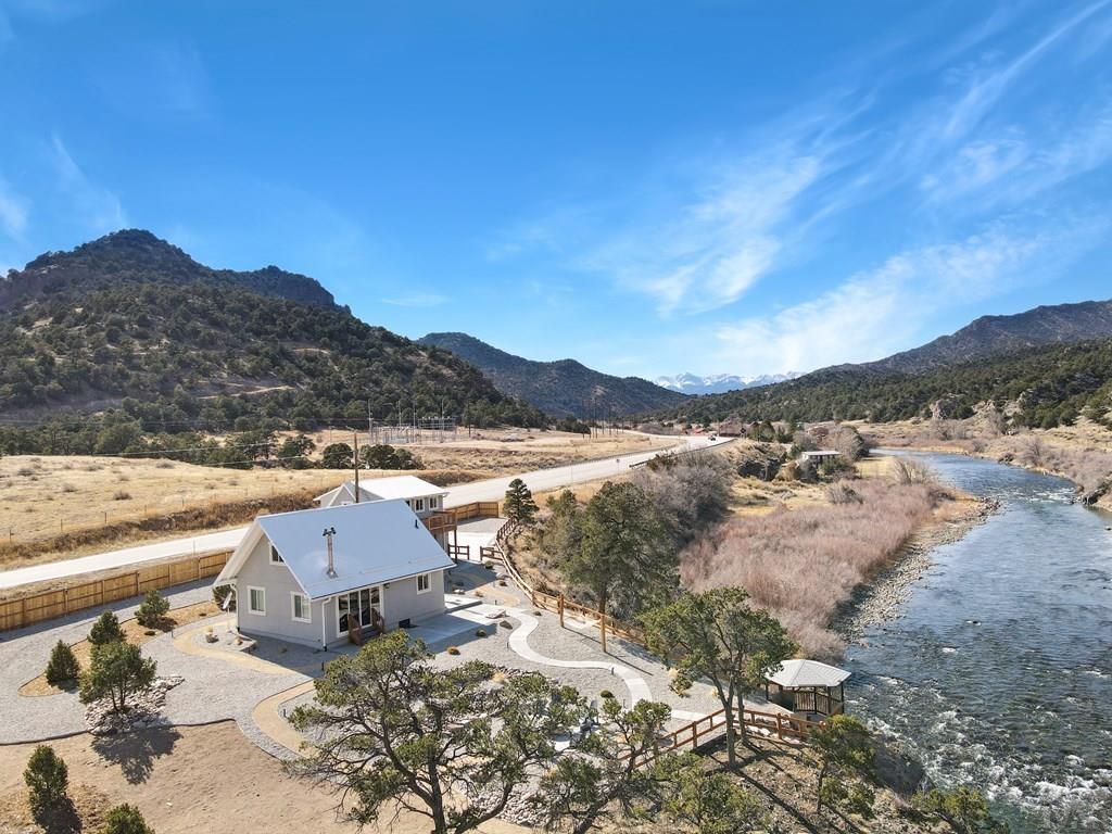 This Stunning Turnkey home and cabin offer an all-inclusive experience in a one-of-a-kind, 360 degee mountain-view retreat directly on the Arkansas River. Outdoor Enthusiasts' will love the Ultimate Fly Fisherman's Paradise and adventure haven just steps away, with the Arkansas River Gold Medal Waters and an abundance of nearby activities -hiking, snow skiing, mountain biking, ATV trails, and rafting & relax in the hot springs. Bighorn Sheep Canyon is also just a short drive away, while the vibrant city of Salida is within 14 min - easy reach for art galleries, festivals, shopping, live music, nightlife, and excellent dining. After a day of outdoor fun, retreat to your own Private Oasis and unwind on the covered viewing deck overlooking the river or gather around the gas firepit for cosy conversations under the stars. Stylish Decor and Thoughtful Layout - Inside, the main house boasts current decor, natural light, and a thoughtful layout with living areas on the main floor and well-appointed bedrooms upstairs. Enjoy relaxation and entertainment with a movie or board game, or prepare meals in the sleek modern kitchen, complete with granite countertops and stainless steel appliances. The charming cabin offers a Rustic Colorado-Chic studio/cabin layout with plenty of space to spread out and unwind. Stream your favorite shows in the cosy sitting area or whip up a warm meal in the convenient kitchenette. Best of all, this amazing property is being sold with All Furniture Included.